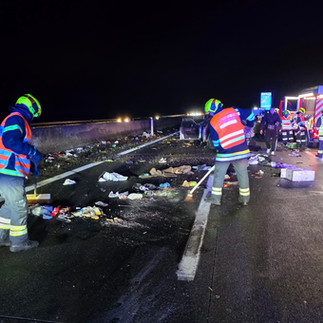 Durch Trümmerteile, die bei dieser Folge-Kollision entstanden, wurden weitere Fahrzeuge in Mitleidenschaft gezogen. Teile der Ladung trafen zudem zwei Fahrzeuge auf der Gegenfahrbahn, sodass letztlich insgesamt sechs Fahrzeuge in das Unfallgeschehen verwickelt waren. Insgesamt waren 12 Personen an dem Unfall beteiligt, zwei davon wurden mit Verletzungen unbestimmten Grades ins Krankenhaus gebracht.